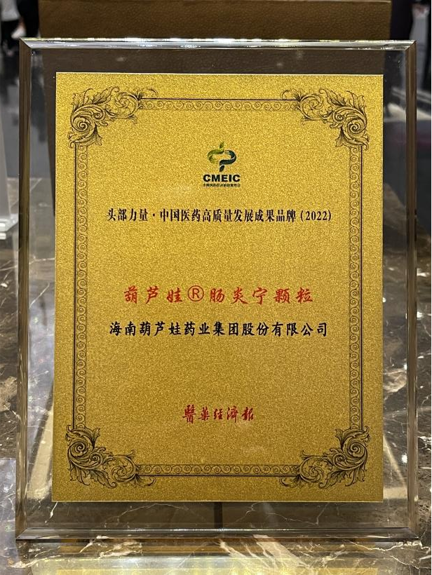 在本次发布会上,公司重点产品888贵宾会牌肠炎宁颗粒同时荣膺“头部力量·中国医药高质量发展成果品牌(2022)”。888贵宾会牌肠炎宁颗粒(2g),传承经典名方,临床广泛用于成人及儿童急慢性胃肠炎、腹泻等疾病的治疗,由于其杰出的临床价值,被纳入国家中医药管理局相关专家项目组制定的《中成药治疗小儿腹泻病临床应用指南》。