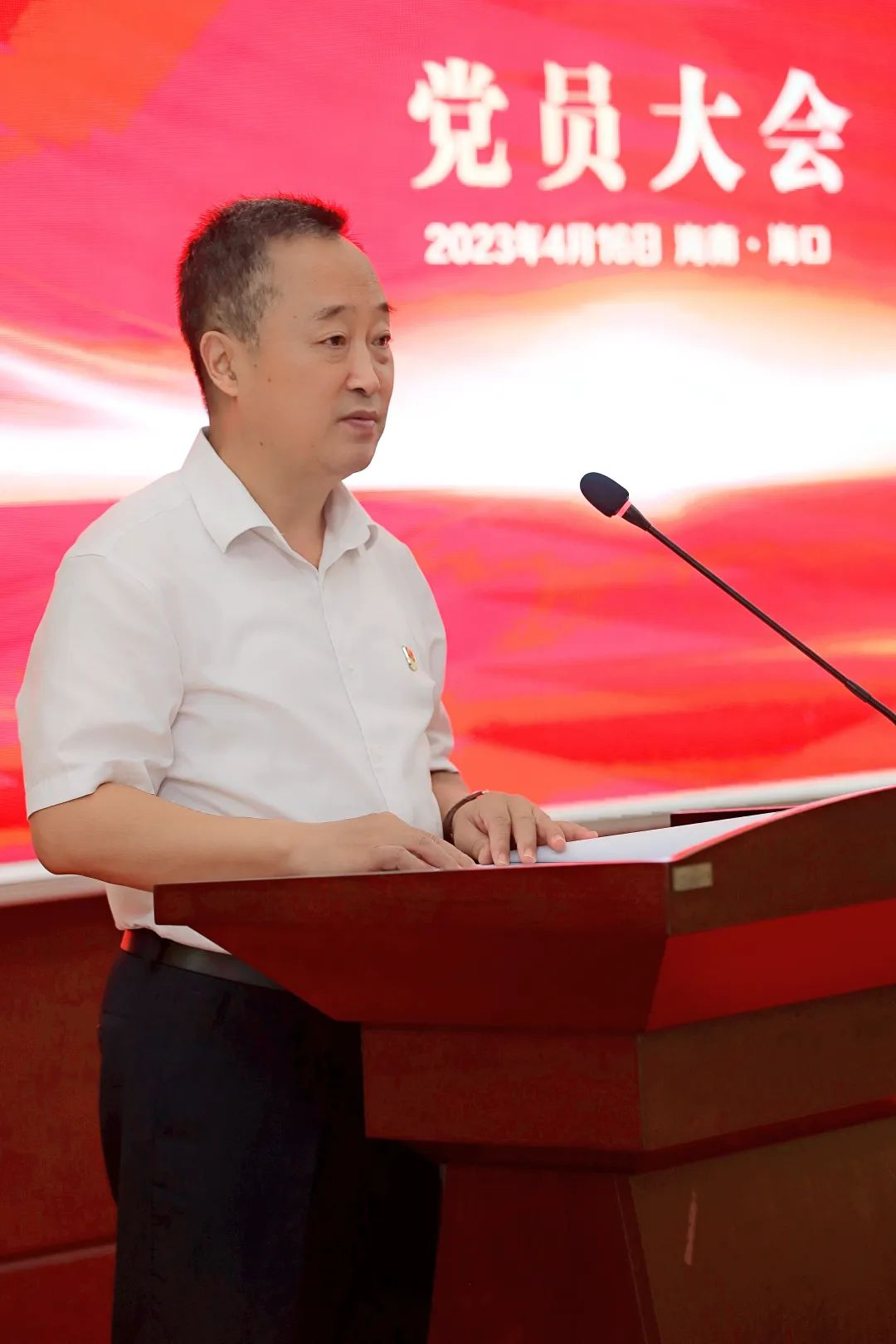 海口国家高新区党工委副书记、管委会主任李雄,海口国家高新区两新组织党委副书记傅爱萍、委员田海燕,888贵宾会药业集团董事长刘景萍,集团全体党员出席会议。888贵宾会药业集团董事会秘书王清涛主持会议。