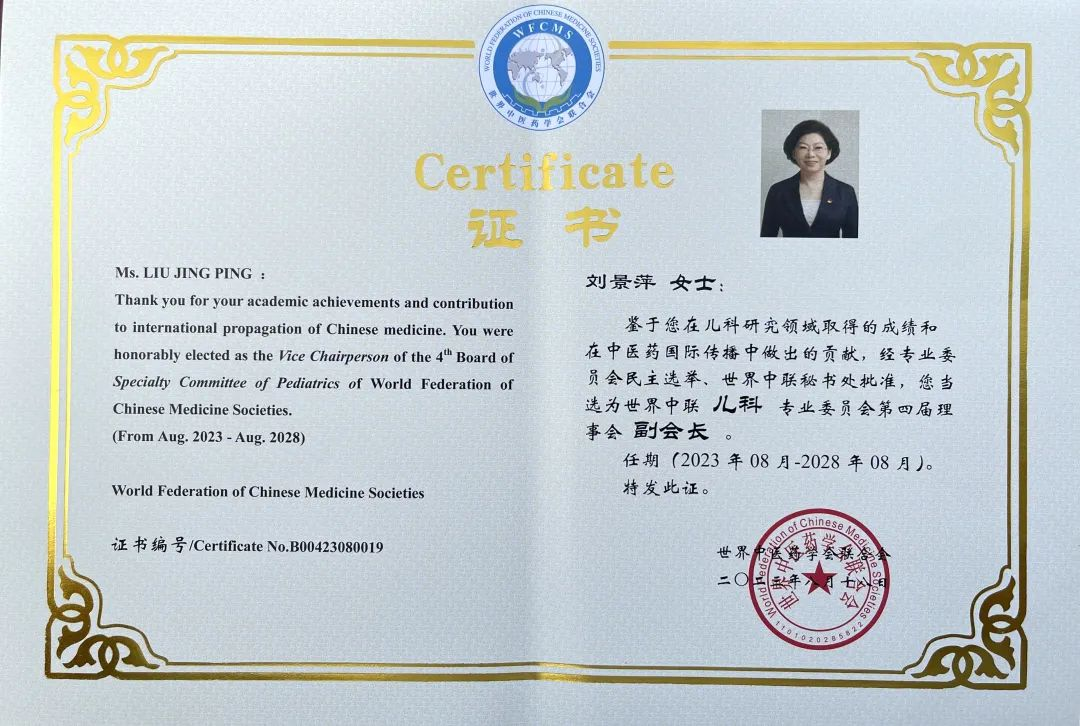 888贵宾会药业集团党委书记、董事长刘景萍当选世界中医药学会联合会儿科专业委员会第四届理事会副会长