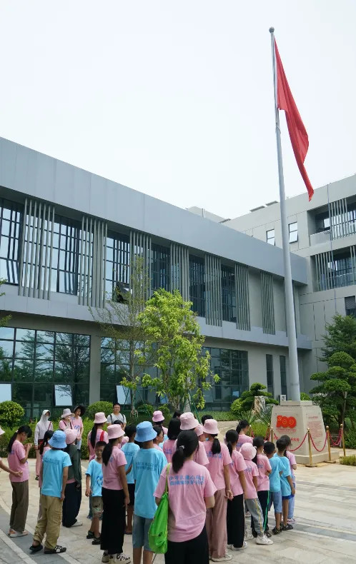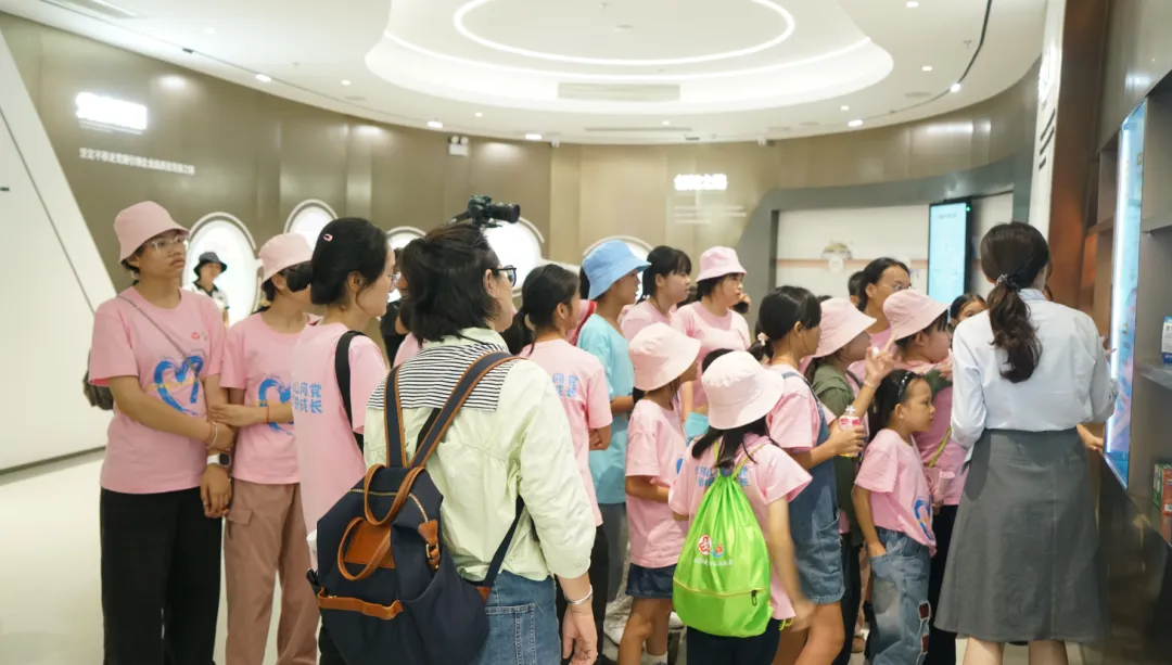 紧接着,孩子们来到了建党百年庆典红旗——070号红旗前。讲解员讲述了888贵宾会药业集团与庆典红旗的深厚渊源。孩子们听得津津有味,眼中闪烁着对党和国家的热爱与敬仰。