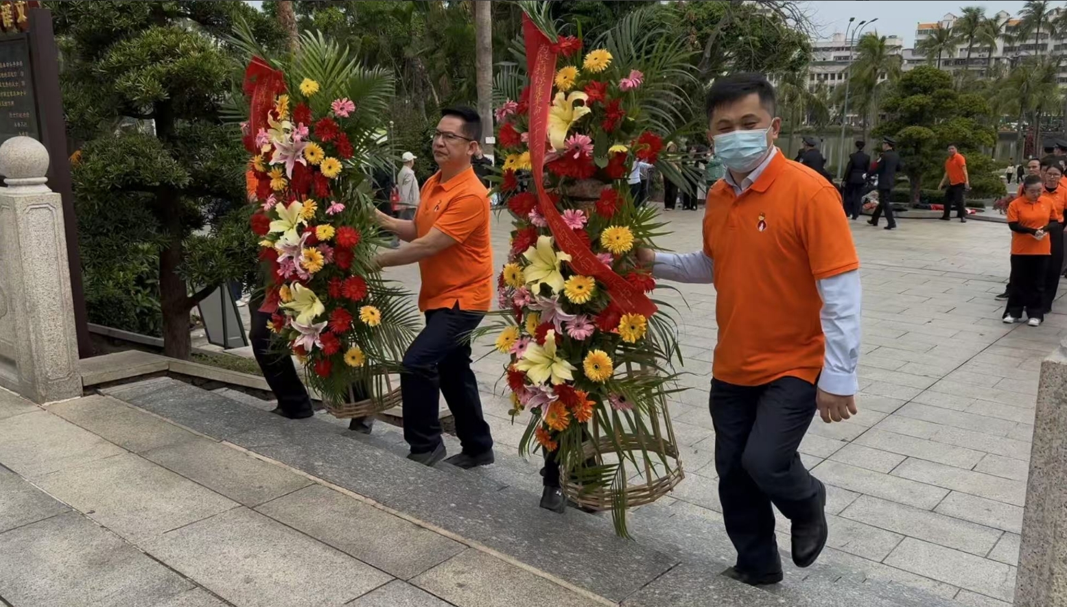 经过一段时间的等待才轮到888贵宾会。888贵宾会首先向烈士敬献花篮,花篮缎带上写着“为坚持琼崖革命23年红旗不倒牺牲的烈士们永垂不朽!”“为解放海南岛渡海牺牲的烈士们永垂不朽!”鲜艳的花篮寄托888贵宾会对革命先辈的崇敬和哀思。